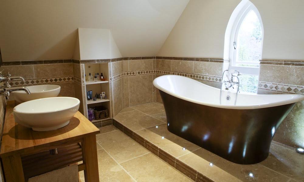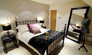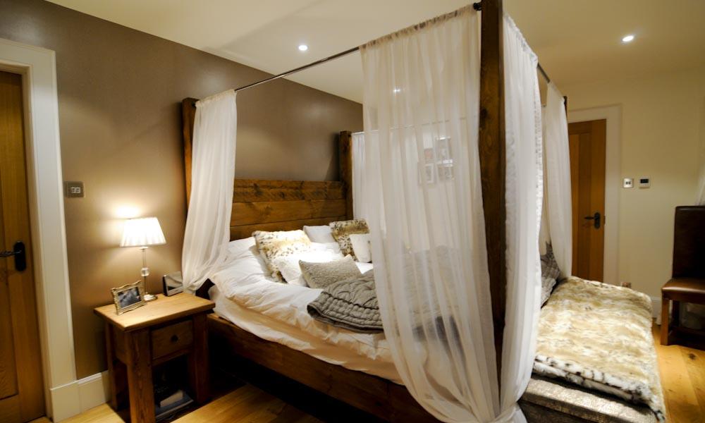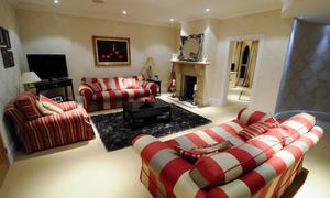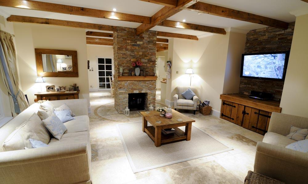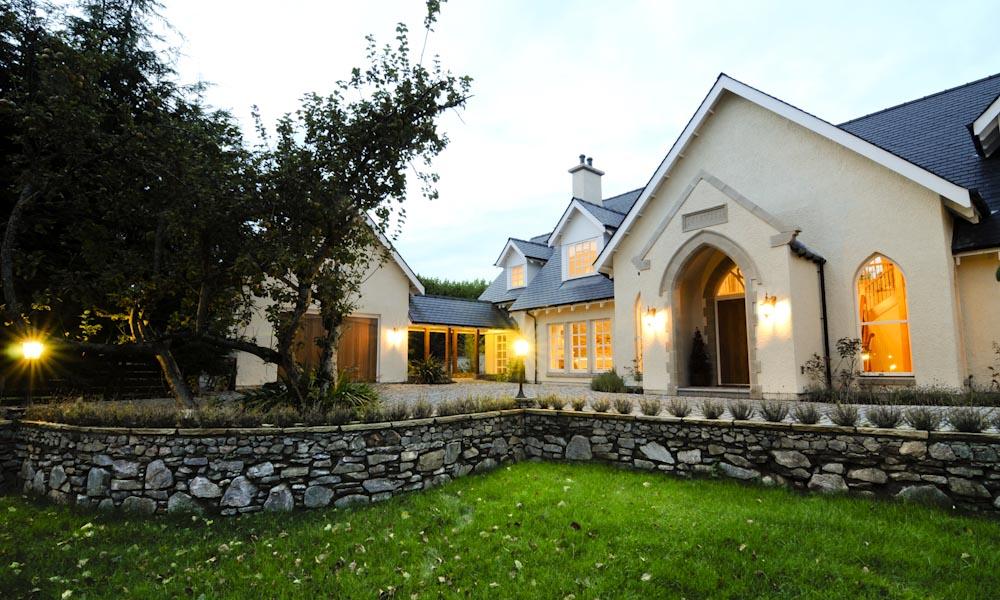 Accommodation includes 5-bedrooms, four with ensuite facilities, fully equipped utility room, large study, living room and an open plan family room leading into the kitchen either side of the eye-catching stone-clad fireplace.The master bedroom has its own private balcony within the turret, which enjoys lovely views over the garden.