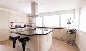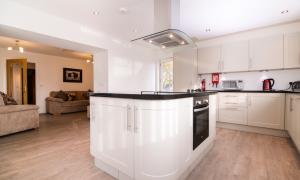 living area on the ground floor is open plan with a bright modern kitchen and large central island. The